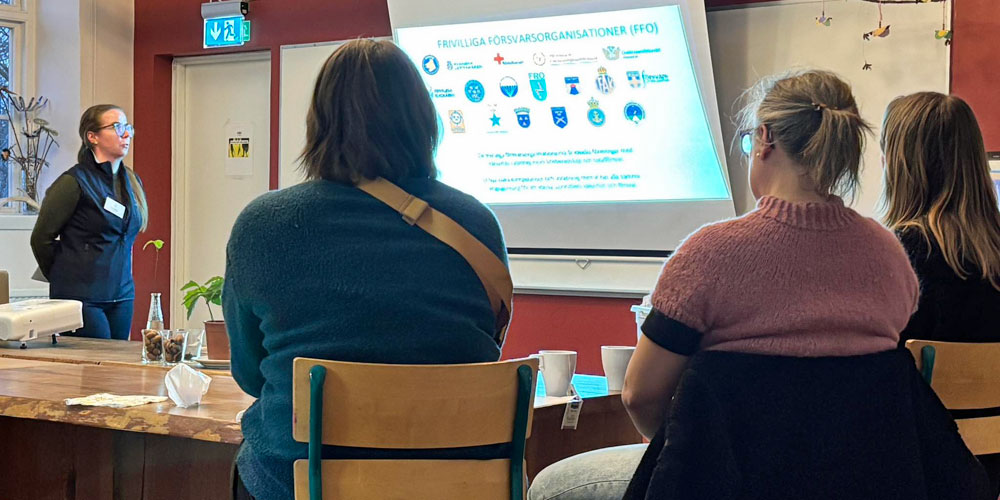 Föreläsare är Anna Beijner, som kommer från frivilliga försvarsorganisationen Svenska Blå Stjärnan.